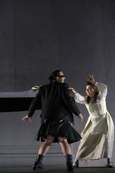 Händels Musik folgt dieser rasanten Dynamik – bis hin zum traditionsgemäßen Lieto fine, in dem das Paar endlich zueinanderfindet und Kleopatra aus Cäsars Hand die Krone von Ägypten erhält. Bis dahin unterstreicht die Inszenierung von Nadja Loschky die dem Werk innewohnende Parallelität von Angst, Einsamkeit, Leichtigkeit und Nähe, und verknüpft die verschiedenen Handlungsstränge zu einem packenden Kaleidoskop menschlicher Extremsituationen.