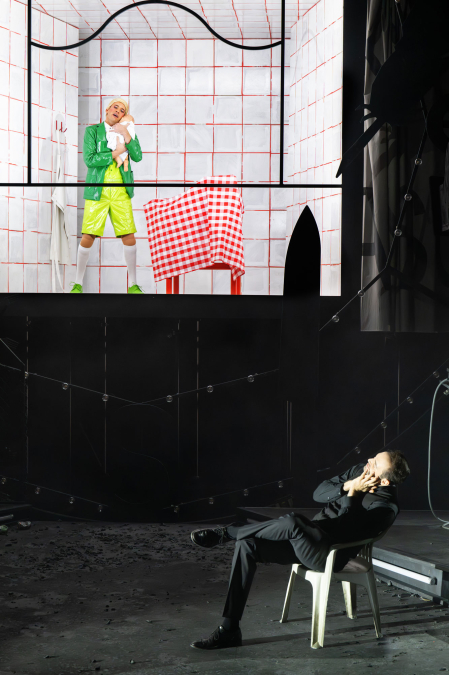 (…) Dass die Premiere so zündet hat auch mit Thilo Ullrichs kurzweiligem Jahrmarkt der Grässlichkeiten zu tun: Dem Ziffernblatt-Todeskreis von Punch, dem gekachelten Schlachthaus, dem Wolkenhimmel mit Aufsteckhacken und der goldenen Privatkapelle samt Betbank. (…)