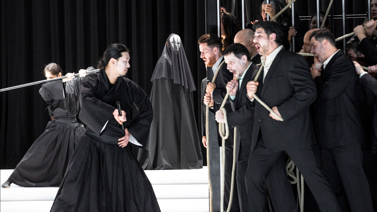Gleichwohl ist ihre Liù als einzige liebende Figur ein Dreh- und Angelpunkt, Guanqun Yu füllt ihn mit Zärtlichkeit aus und der einzigen lieblichen, süßen, nachher entsprechend bejubelten Gesangspartie. Turandot ist hingegen die große Elza van den Heever mit einem monströsen Auftritt und einer riesigen, eisigen, schneidenden Stimme, die bloß für Momente angeweicht ist. Als sie kaum noch Spielraum hat, mordet sie wenigstens noch den Wächter, dessen Messer Liù sich greifen konnte. Bald darauf lässt Turandot das Messer fallen, sie kann für den Moment nichts mehr tun. Das Volk verbeugt sich stoisch vor Calaf, der gewonnen hat, aber was eigentlich? (…)