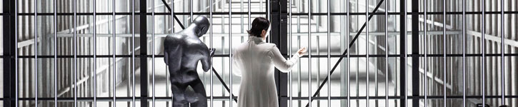(…) Welten prallen aufeinander. Die Prinzessin bleibt, streng weiß gekleidet, mit Maske und jede Emotion ins Regelhafte ableitenden Bewegungen, unpersönlich und emotionslos; Elza van den Heever singt sie kraftvoll, eiskalt und selbstbewusst. Calaf dagegen (glänzend: Alfred Kim) ist vor Leidenschaft zerrissen und siegessicher. Gefährlich werden könnte ihm nur Liù, die Sklavin seines Vaters Timur (Inho Jeong); sie aber (Guanqun Yu, mit herzzerreißender Emphase) geht lieber in den Tod, als den Prinzen zu verraten.