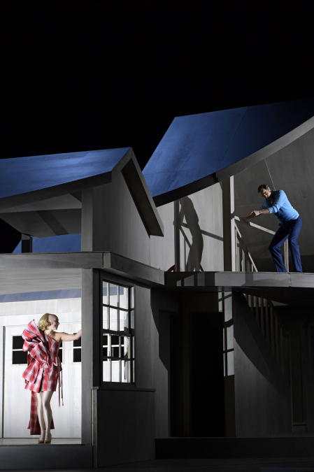 Eine Frau, ein Mann. Die Ehe, der Alltag, das Leben ... Worauf fußt ihr Heute? Was gilt morgen? Und wie blicken sie übermorgen auf ihr gemeinsames Gestern zurück? Anhand dieser Fragen legt Regisseur David Hermann einen Handlungsfaden durch vier Werke aus der ersten Hälfte des 20. Jahrhunderts. Unter dem Titel Warten auf heute verbindet er Arnold Schönbergs zwölftönigen Einakter Von heute auf morgen, seine Begleitmusik zu einer Lichtspielszene und das expressive Monodram Erwartung mit dem Liederzyklus Sechs Monologe aus »Jedermann« von Frank Martin, einem Verfechter der Tonalität. Auf zutiefst berührende Weise nimmt der Abend die Sollbruchstellen zweier durch die Ehe miteinander verbundener Individuen in den Blick und offenbart auch jene, die sie jeweils in sich tragen. Mit den unterschiedlichen dynamischen und emotionalen Amplituden der Werke atmet Warten auf heute ein Lebensgefühl sicherer Ungewissheit, einen undurchdringlichen, bangen Seelenzustand der Einsamkeit – die Kenngröße eines alten wie neuen Heute?