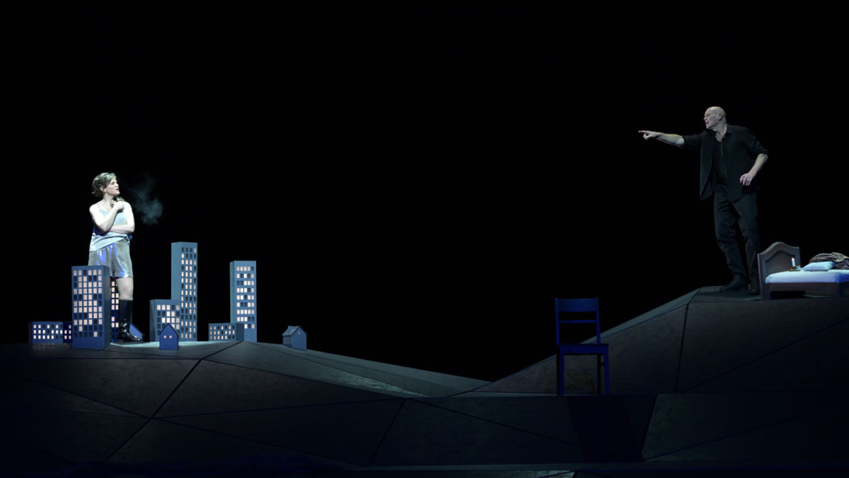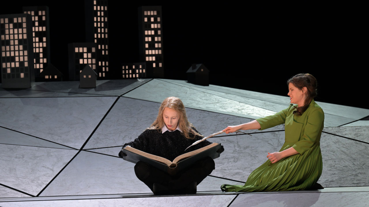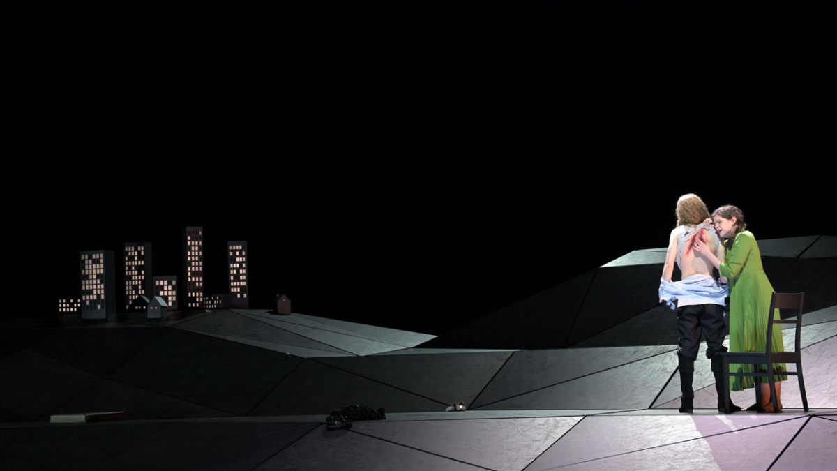 Formal gleicht die Oper einem Spiel im Spiel: Drei Engel, die sich mühelos zwischen Gegenwart und Vergangenheit bewegen, schlüpfen in verschiedene Rollen und treiben das Geschehen permanent voran. Schließlich werden sie zu Zeugen einer Tragödie, in der die Gewaltbereitschaft des Menschen ebenso aufscheint wie dessen schöpferisches Potenzial.