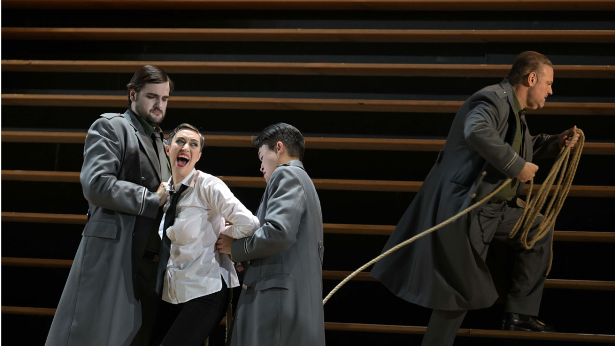 Seville. Moralès and his soldiers look on as men pester Micaëla, who is looking for sergeant Don José. She runs off, saying she'll come back when José's back on duty. The women who work at the cigarette factory are taking a break, surrounded by men. Carmen has the most admirers. Only one man, José, takes no notice of her until she throws him a flower. He's confused and fascinated by her, and pleased when he sees Micaëla again. She, an orphan raised by José's mother, gives him a letter, money and, best of all, a kiss from his mother, which makes him forget seductive Carmen for a moment. Carmen is arrested for injuring one of her colleagues in the factory with a knife. Lieutenant Zuniga orders José to take her to prison. She seduces José with song and promises of love. He helps her escape, and is arrested. Lillas Pastia's tavern. Carmen and her friends Mercédès and Frasquita work with the smugglers Dancaïro and Remendado. Escamillo, winner of the bullfight in Granada, appears. He's strongly attracted to Carmen, who's waiting for José, due to be released from prison that day, the reason she refuses to take part in the next smuggling operation. José arrives at last. While Carmen dances for him, the tattoo's heard. The soldier, conscious of his duty, tells Carmen he must go. She's furious with him and doubts his love. Lieutenant Zuniga suddenly appears. José, driven by jealousy, attacks his superior. Zuniga is disarmed by the smugglers. There's now no turning back for José, he deserts. INTERVAL In the mountains. The smugglers try and transport their wares to Seville under the cover of darkness. José now lives with them and Carmen, who's fed up with his jealousy. The cards prophesy that both will die. When Escamillo, searching for Carmen, meets José they fight a duel, during which Carmen saves Escamillo's life. He invites her and the smugglers to the bullfight in Seville. Micaëla bravely approaches the smugglers to try and persuade José to come home. Only the news that his mother is on her deathbed can move him to follow Micaëla. Outside the bullring. Escamillo enters the arena for the bullfight, cheered by the people. Carmen wants to follow him. José blocks her way. José begs Carmen, for the last time, to follow him and start a new life. She refuses, throwing the ring he gave her to the ground. José stabs her.